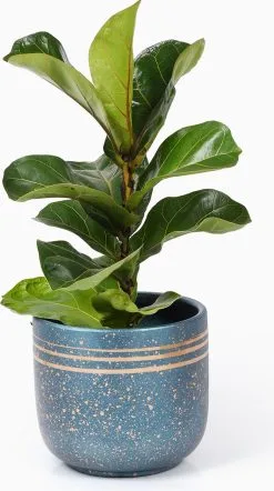Spieringstore® Bloempotten Binnen – Keramiek – Gouden Rand – Bloempot Buiten – Afvoergat 24 Cm – Groen – Groot