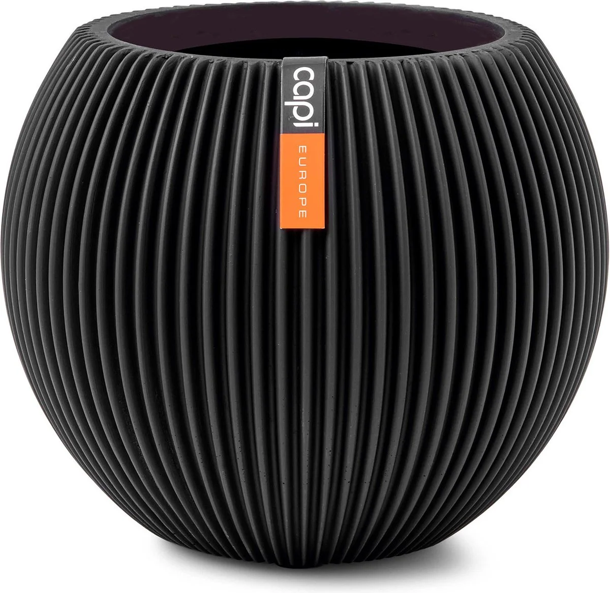 Capi Europe – Vaas Bol Groove – 29×26 – Zwart – Bloempot Voor Binnen – BGVBL104
