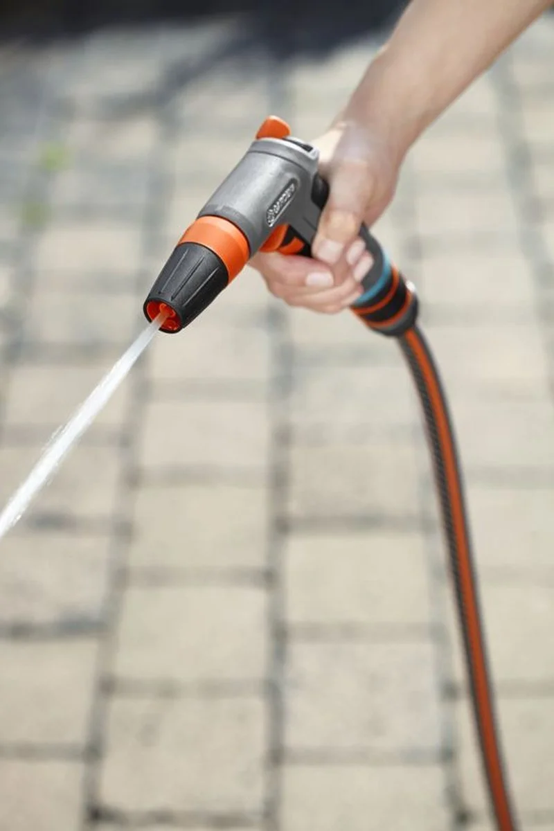 Het Gardena Comfort spuitpistool is geschikt voor zowel reinigen als bewateren. De waterstraal van deze reinigingsbroes kan variabel worden ingesteld van volle straal tot een fijne nevel. De ergonomische handgreep met zachte kunststof componenten zorgt voor optimaal bedieningscomfort tijdens het gebruik. De waterstroom kan bovendien traploos worden ingesteld. Voor continu gebruik kan de impulshendel worden vastgezet. Het Comfort reinigingssproeier beschikt bovendien over geintegreerde bescherming tegen vorst.