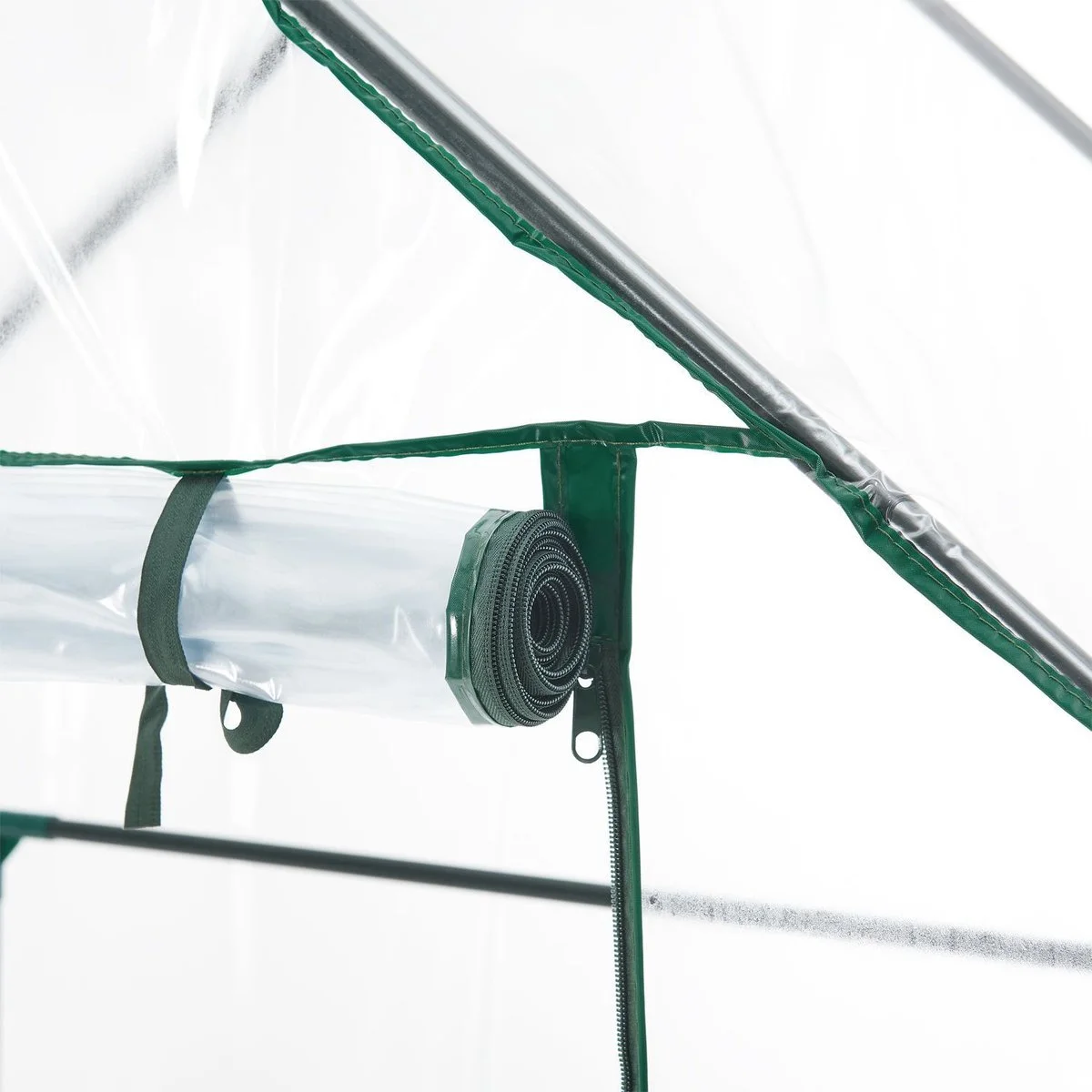 De grote foliekas met PVC-dekzeil is ideaal voor alle zelfvoorzienende en hobbytuinders. Dankzij de robuuste beschermfolie worden ongedierte en negatieve weersomstandigheden buitengesloten. Tegelijkertijd creëert de zon een ideaal klimaat voor de groei van de planten. Met deze broeikas wordt het kweken van groente en fruit op het balkon, terras of in de tuin kinderspel, ook zonder groene vingers. De constructie van gepoedercoate buizen is licht, duurzaam en snel op te zetten dankzij het plug-in systeem.