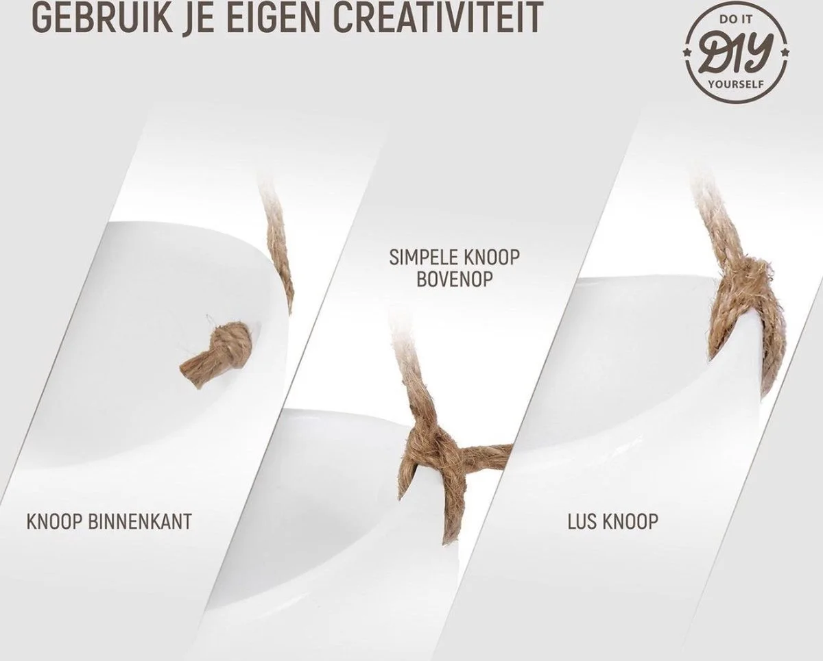 3 verschillende koorden – bij deze set ontvang je koorden in 3 verschillende stijlen: hennep, katoen en kunstleer. Hierdoor passen deze plantenhangers in ieder interieur en kun je afwisselen wanneer jij dat wilt.