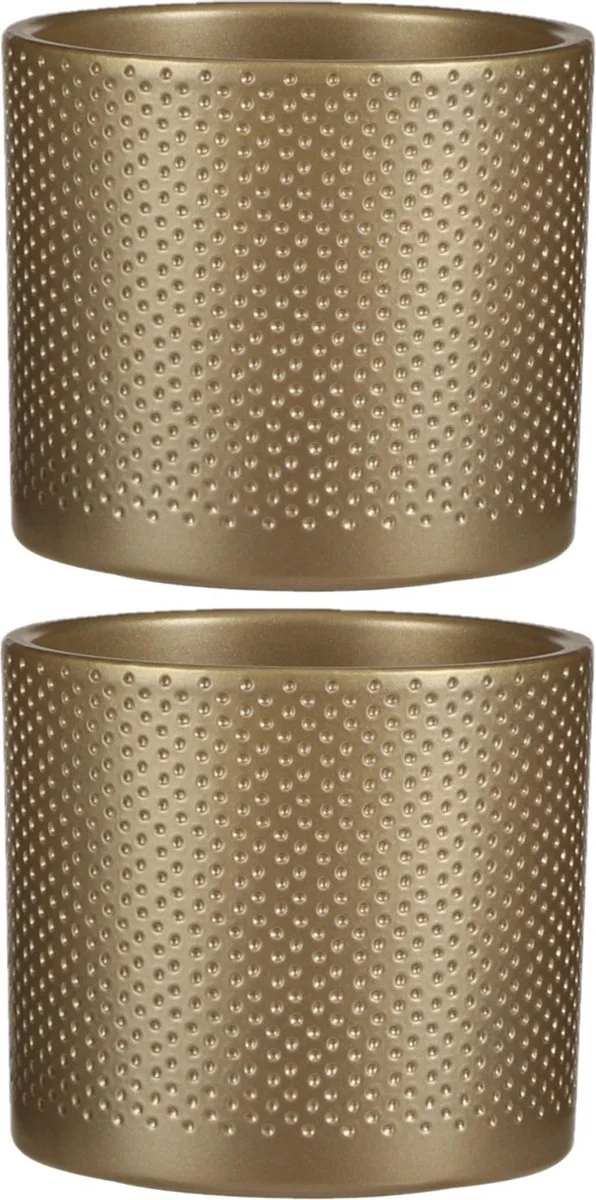 Mica Decorations 2x Stuks Bloempot In Kleur Relief Goud Keramiek Voor Kamerplant H12.5 X D13.5 Cm- Plantenpotten Binnen