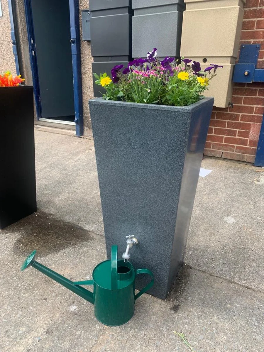 Deze chique regenton plantenbak is een elegante toevoeging aan elke tuin. De Manhattan is een twee-in-een plantenbak en regenton, waardoor het bovenste deel kan worden geplant terwijl het onderste deel regenwater opvangt. Overtollig water uit de planter kan ook weglopen naar de tank, waardoor er geen water verloren gaat. Door de plantenbak eenvoudig 90 graden te draaien, kan het display zonder kraan worden bediend, waardoor de illusie van een plantenbak ontstaat, terwijl het water vanaf de zijkant of achterkant toegankelijk is.