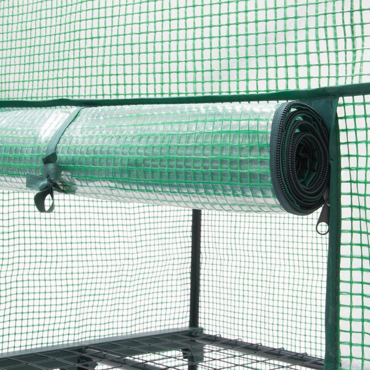 Deze kas is ideaal voor het laten groeien van planten en kruiden. Het dikke, scheurvaste folie beschermt uw stekjes en kruiden onder alle weersomstandigheden. De deur met ritssluitingen is makkelijk te openen en geeft ook de mogelijkheid om de temperatuur in de kas te regelen. De deur kan opgerold en met een stoffen lint vastgemaakt worden, waardoor u uw planten ook makkelijk water kunt geven en verzorgen.