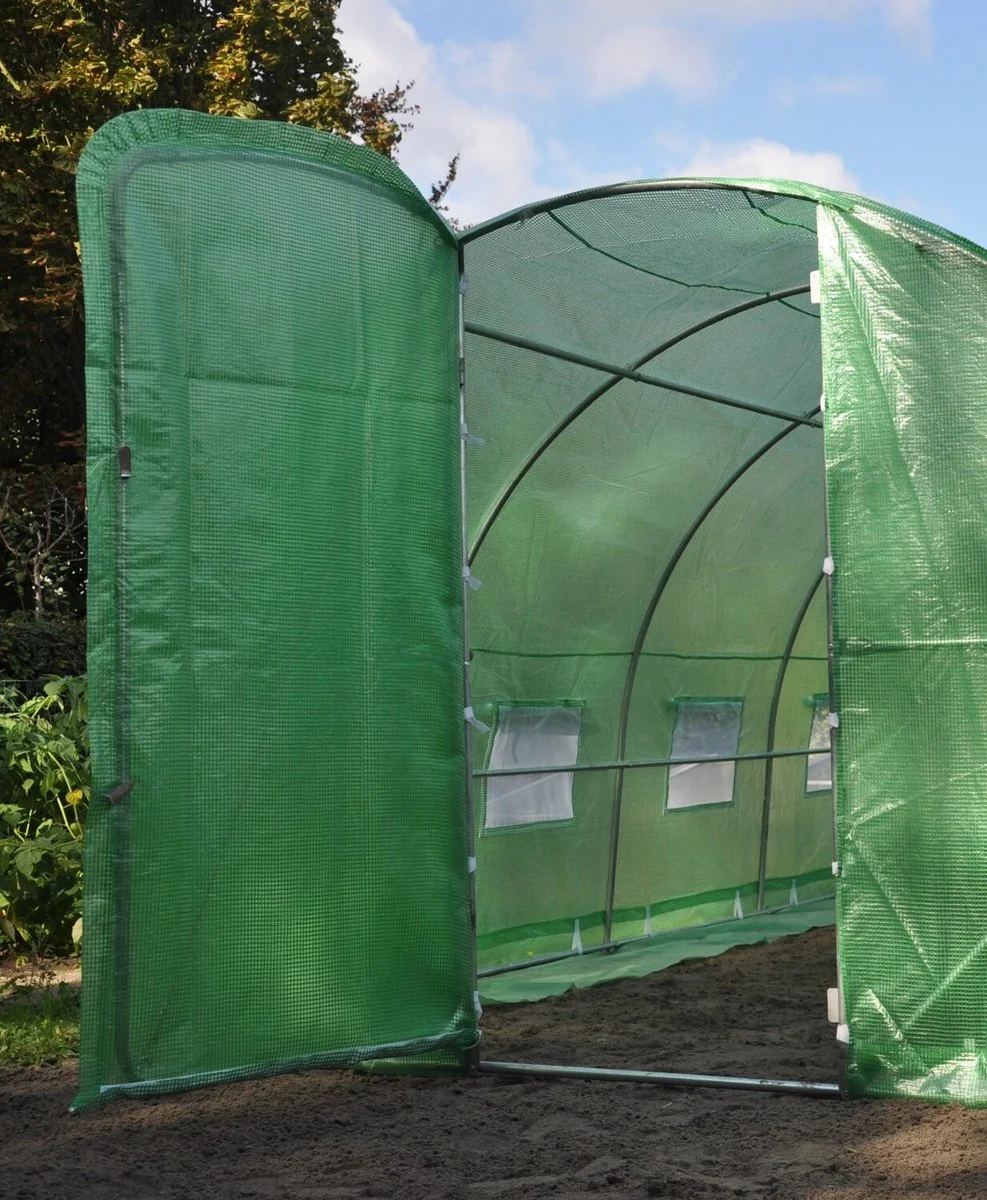 De toegang is dankzij de hoogte van 2 meter en een stalen draaideur optimaal. Voor een goede beluchting is deze tunnelkas voorzien van 2 lange met klittenband afsluitbare horrengaas ramen in de zijgevels en één vierkant raam in de achtergevel. Het verankeren van de Silver Rocket aan de ondergrond gebeurt door het ingraven van de 50cm lange folieflap aan de onderzijde van de kas, een veelgebruikte methode. Optioneel is een extra verankeringset verkrijgbaar, waarbij gebruik wordt gemaakt van spanbanden en stalen grondankers.