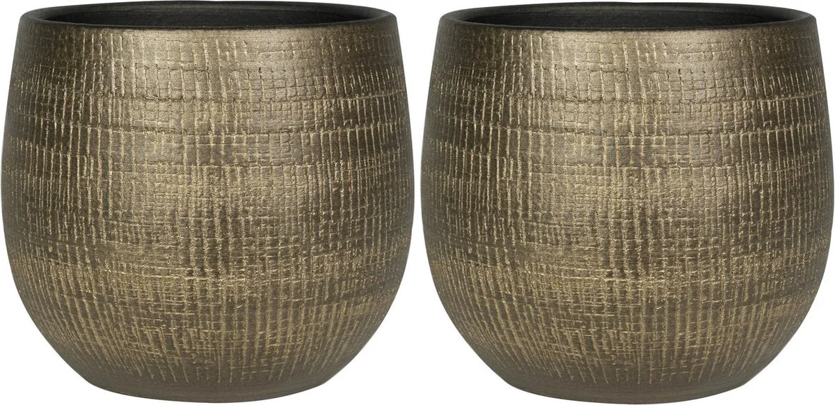 Ter Steege Set Van 2x Stuks Plantenpotten/bloempotten In Een Strakke Modern Design Look Metal Goud Dia 22 Cm En Hoogte 20 Cm